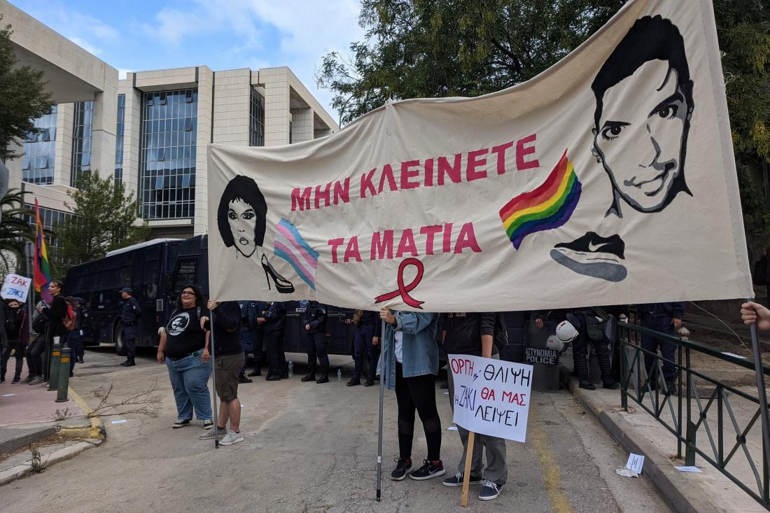 Έξω από το δικαστήριο πραγματοποιήθηκε συγκέντρωση από σωματεία και ενώσεις, ΛΟΑΤΚΙ οργανώσεις, αντιρατσιστικές και αντιφασιστικές συλλογικότητες, κόμματα και οργανώσεις της αριστεράς.