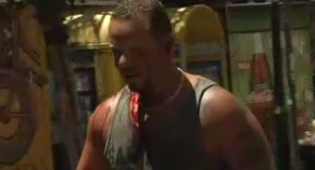 Ο Ελληνοαυστραλός με αίματα στο πρόσωπο και στο σώμα ζητά τη βοήθεια της αστυνομίας, μέρα-μεσημέρι στην Ερμού, καταγγέλλοντας πως του επιτέθηκε ομάδα κουκουλοφόρων επειδή μπήκε σε κατάστημα και ψώνισε.