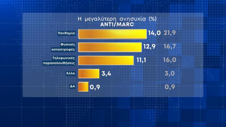 Η πανδημία, οι παρακολουθήσεις και οι φυσικές καταστροφές, φαίνεται να απασχολούν μικρότερη μερίδα κόσμου με 14%, 11,1% και 12,9% αντίστοιχα.