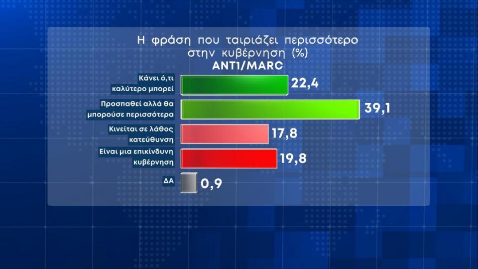 Το 61, 5% των ερωτηθέντων χαρακτιρίζει πως η κυβέρνηση κάνει ό,τι καλύτερο μπορεί, προσπαθεί, αλλά θα μπορούσε και λίγο καλύτερα.