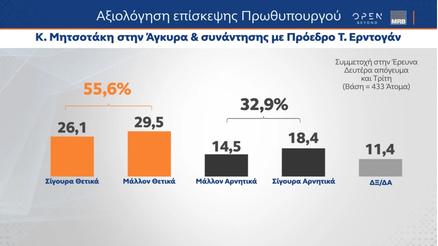 Δημοσκόπηση MRB: Διευρύνεται η ψαλίδα ΝΔ με ΣΥΡΙΖΑ, θετική αξιολόγηση της συνάντησης Μητσοτάκη - Ερντογάν