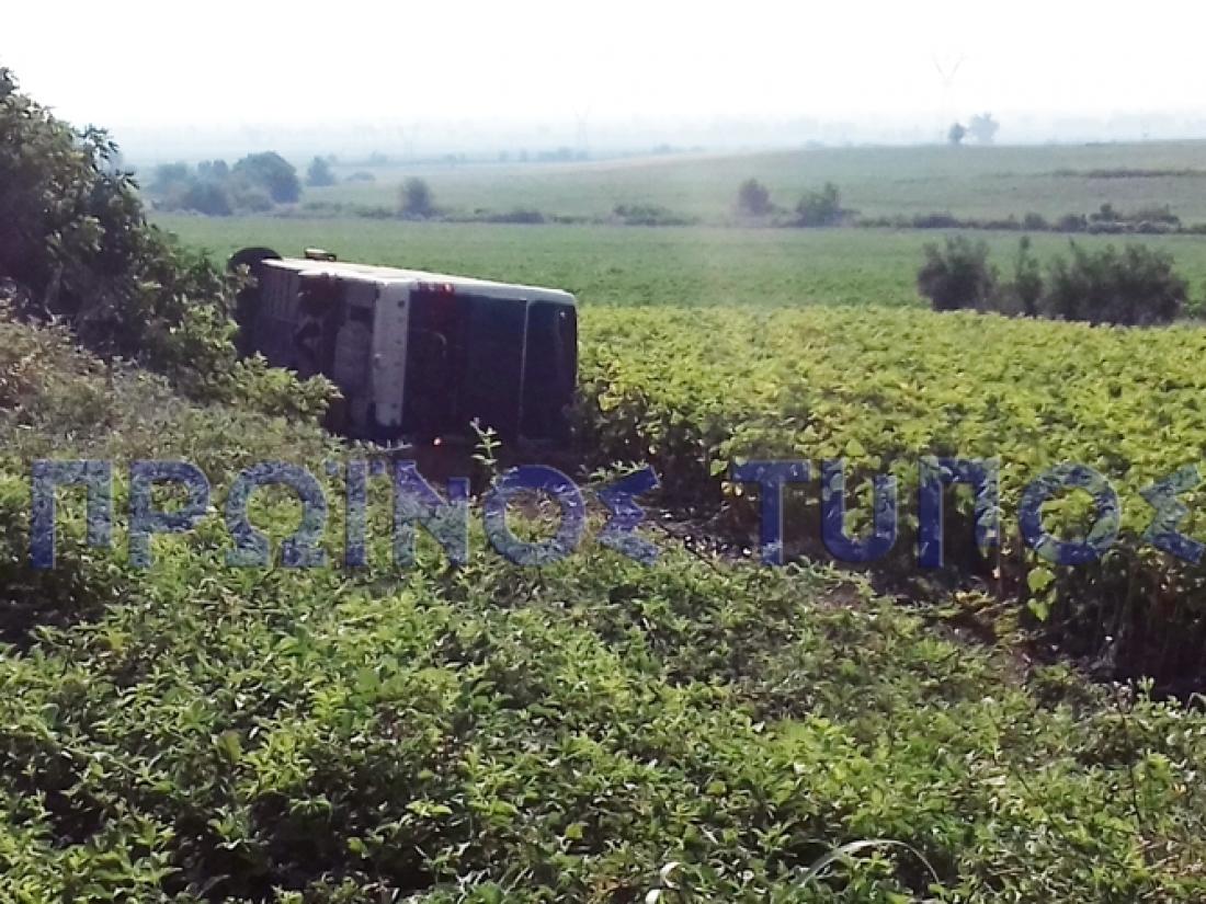 Άγιο είχαν και οι δεκατρείς επιβαίνοντες στο λεωφορείο του υπεραστικού ΚΤΕΛ Δράμας που εκτελούσε το δρομολόγιο Αθήνα - Δράμα, όταν, για άγνωστους μέχρι στιγμής λόγους, εξετράπη της πορείας του και έπεσε σε παρακείμενη καλλιεργήσιμη έκταση με ηλιοτρόπια.