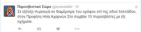Τραγωδία τα ξημερώματα της Πέμπτης στο Μενίδι από φωτιά σε διαμέρισμα 1ου ορόφου πολυκατοικίας επί της οδού Μιλτιάδου στην περιοχή Προφήτης Ηλίας Αχαρνών. Όταν οι πυροσβέστες έσβησαν τη φωτιά βρήκαν δύο απανθρακωμένα πτώματα, μία γυναίκα 80 ετών και ο 45χρονος γιος της.