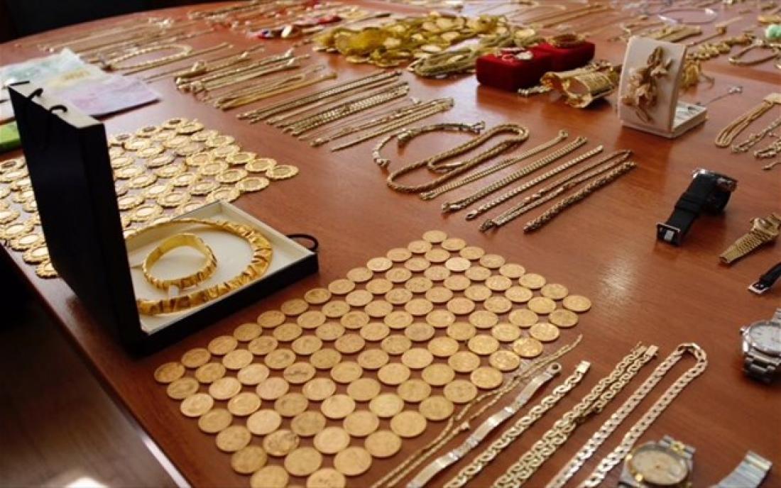 Ακολούθησε η σύλληψη της 40χρονης και πλήθος ερευνών σε οικίες και καταστήματα, όπου βρέθηκαν και κατασχέθηκαν δύο πλάκες χρυσού, βάρους περίπου 1 κιλού και αξίας 25.000 ευρώ, ασημένια εικόνα (αγαλματίδιο) της Παναγίας βάρος περίπου τριών κιλών, αξίας 3.000 ευρώ, πλάκα ασημιού βάρους περίπου 300 γραμμαρίων, πλήθος κοσμημάτων και ρολογιών, 4 ειδικά φουρνάκια, στα οποία έλιωναν τα χρυσά κοσμήματα, πλήρης μονάδα φασματογράφου, με την οποία μετρούσαν την καθαρότητα λιωμένου χρυσού, δύο καλούπια μορφοποίησης λιωμένου χρυσού, το χρηματικό ποσό των 500 ευρώ καθώς και διάφορα άλλα τιμαλφή και αντικείμενα.