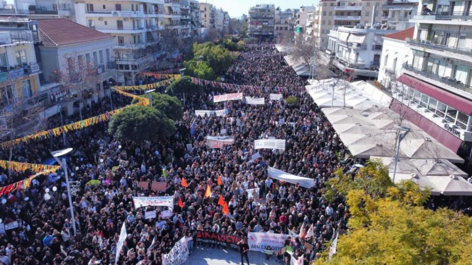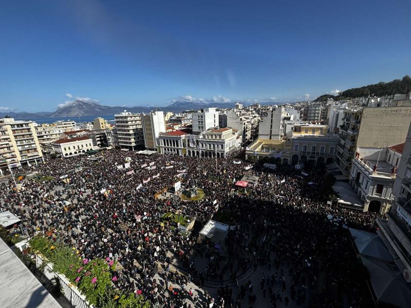 Ξεκίνησε στην Πάτρα η μεγάλη συγκέντρωση στη μνήμη των 57 νεκρών του σιδηροδρομικού δυστυχήματος στα Τέμπη, με κυρίαρχο αίτημα να αποδοθεί δικαιοσύνη.