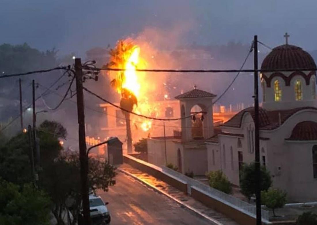 Επίσης στην Κεφαλονιά, στις Κεραμειές, ένας κεραυνός που έπεσε στην κατοικημένη περιοχή προκάλεσε φωτιά, καθώς χτύπησε ένα φοινικόδεντρο! Όπως επισημαίνουν κάτοικοι της περιοχής και φαίνεται στις εικόνες, στο σημείο βρίσκεται στάση λεωφορείου, όπου μεταξύ άλλων, κάθε πρωί περιμένουν και μαθητές πηγαίνοντας προς το σχολείο.