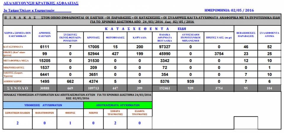 Οι συλλήψεις έφτασαν τις 104 σε όλη τη χωρά, από τις 24 Μαρτίου έως και την Κυριακή του Πάσχα για παράνομη πώληση και κατοχή κροτίδων.