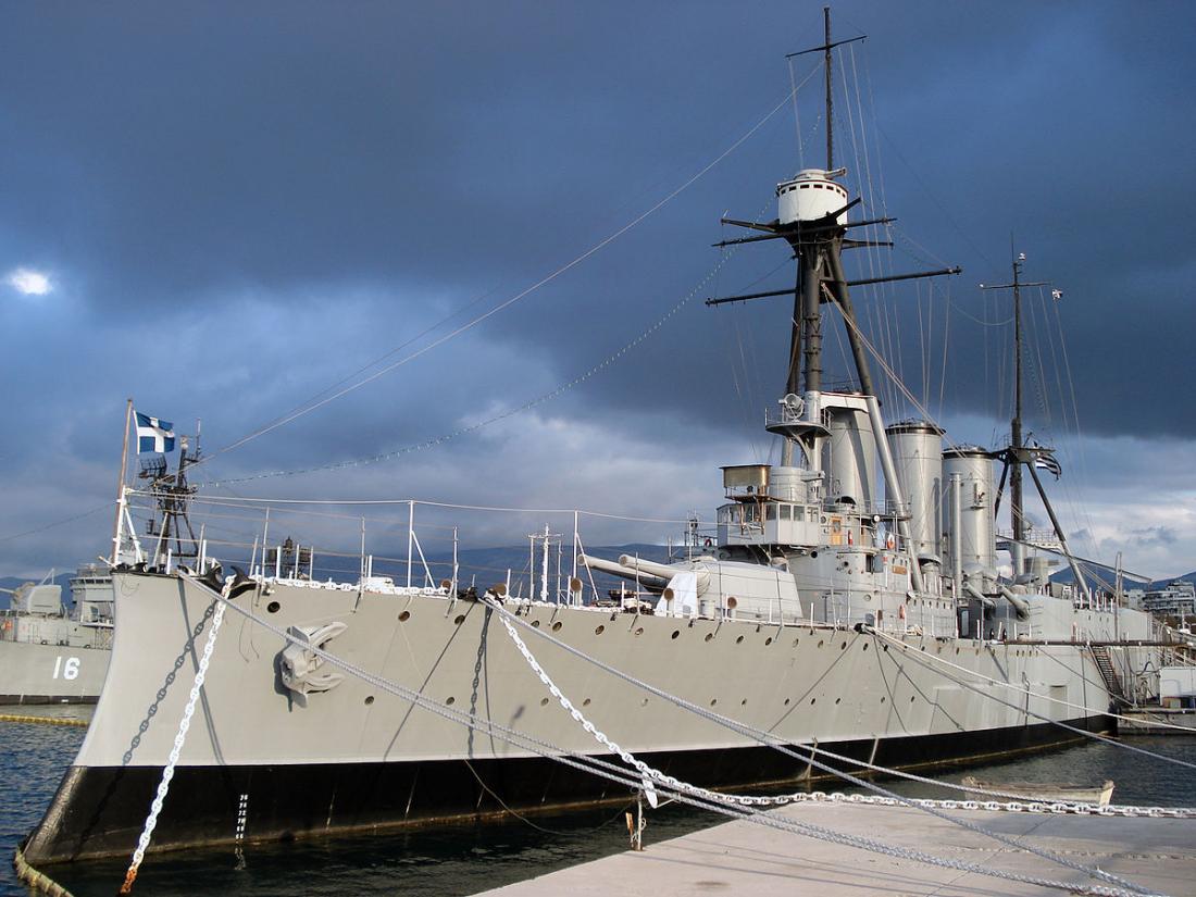 Παράλληλα, θα παραλάμβανε και τα πυρομαχικά που είχαν παραγγελθεί στην . Να σημειωθεί ότι από το 1910 είχε γίνει μια συμφωνία ανάμεσα στην ελληνική και την αγγλική κυβέρνηση για να ανατεθεί σε μια ομάδα Αγγλων αξιωματικών, με επικεφαλής τον ναύαρχο Τόφνελ (Lionel Grant Tufnell), η αναδιοργάνωση και εκπαίδευση του Ναυτικού. Κυβερνήτης του νεότευκτου θωρηκτού ήταν ο πλοίαρχος Ι. Δαμιανός και το πλήρωμά του -όπως γνωστοποιήθηκε αργότερα- αποτελούνταν από 30 αξιωματικούς και 556 ναύτες, συμπεριλαμβανομένων των υπαξιωματικών.