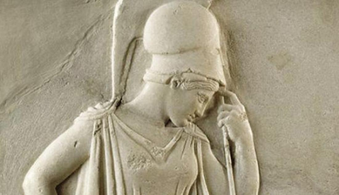 Η θεά Αθηνά μπροστά στην αναθηματική στήλη, έχει μνήμη και έχει συναίσθημα. Το πρόσωπό της είναι «γεμάτο», δείχνει βούληση και αποφασιστικότητα. Θέλει να θυμάται και μαζί με αυτήν να θυμούνται οι πολίτες ες αεί τα ονόματα αυτών που έπεσαν υπέρ βωμών και εστιών, υπερασπιζόμενοι το Ελληνικό πνεύμα και τον Ελληνικό πολιτισμό. Η θεά είναι βαθύτατα υποψιασμένη για το ότι, ένας και μοναδικός είναι πάντα ο δρόμος μπροστά μας και ότι πάντοτε θα συναντούμε μια επιτύμβια πλάκα στο τέρμα του, με το μεγαλείο και ταυτόχρονα το αναπότρεπτο του θανάτου χαραγμένα πάνω της. Αυτή και η κινητήρια δύναμη του σύντομου βίου και συνάμα η αναπότρεπτη μοίρα μας.