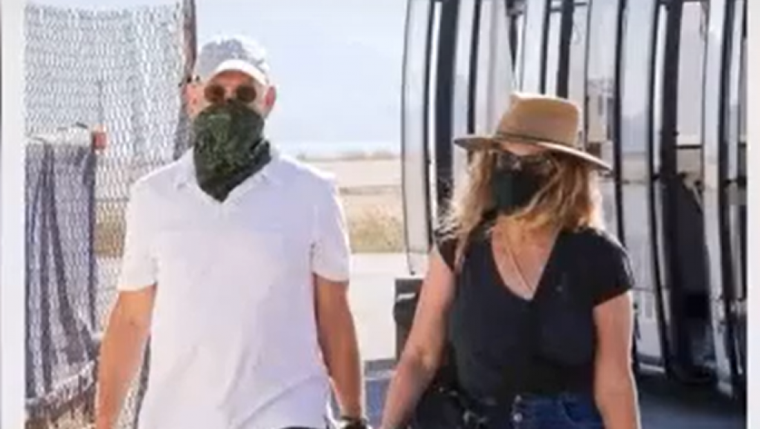 Στις φωτογραφίες από την άφιξη τους και οι δυο τους φορούν μάσκα προστασίας.