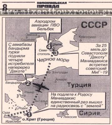 Ο πιλότος από την Κρήτη, οδήγησε το αεροπλάνο ως την τότε Σοβιετική Ένωση. Μέσα στο σκοτάδι χωρίς όργανα και κατάφερε όχι μόνο να περάσει τον ελληνικό εναέριο χώρο αλλά και να διασχίσει μια δεύτερη χώρα του ΝΑΤΟ, την Τουρκία, να τον ψάχνουν και να μην τον βρίσκουν τα ραντάρ.