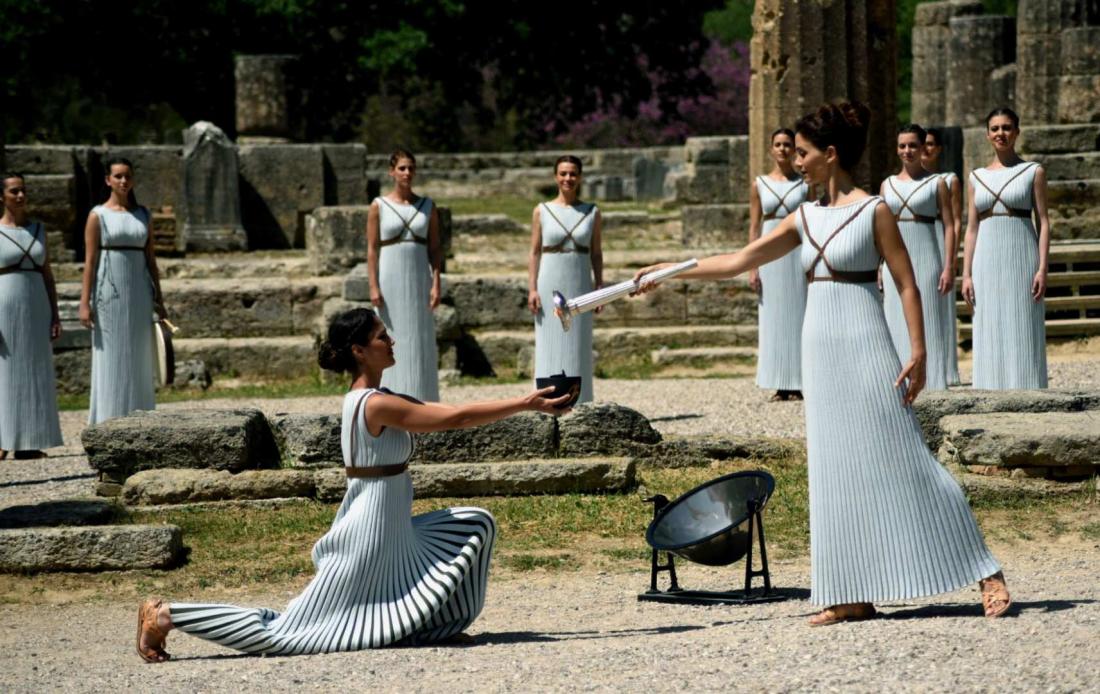 Λίγο μετά τις 12:00 το μεσημέρι η Πρωθιέρεια Κατερίνα Λέχου εισήλθε στον Ναό της Ήρας, ακολουθούμενη από τις Ιέρειες. Αμέσως μετά, η Πρωθιέρεια έθεσε τη δάδα στο ειδικό κάτοπτρο και άναψε τη Φλόγα, υπό τα παρατεταμένα χειροκροτήματα των θεατών.