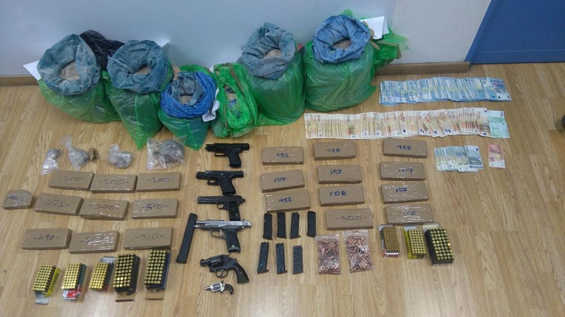 Αξίζει να σημειωθεί ότι στο πλαίσιο των ερευνών βρέθηκαν και κατασχέθηκαν επιμελώς θαμμένα στον εξωτερικό χώρο μονοκατοικίας στην Κερατέα Αττικής, περισσότερα από 65 κιλά ηρωίνης, περίπου 113 κιλά άγνωστης σκόνης που προοριζόταν για νόθευση ναρκωτικών, όπλα και μεγάλος αριθμός φυσιγγίων.