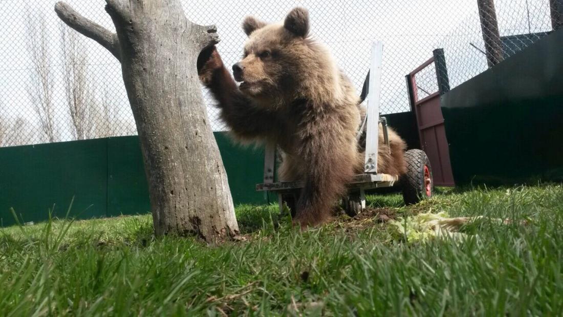 Με ένα ειδικό καροτσάκι προμήθευσε ο «Αρκτούρος» έναν μικρό αρκούδο με αναπηρία (δεν μπορούσε να κουνήσει τα πίσω του πόδια εξαιτίας τραυματισμού στη σπονδυλική στήλη).