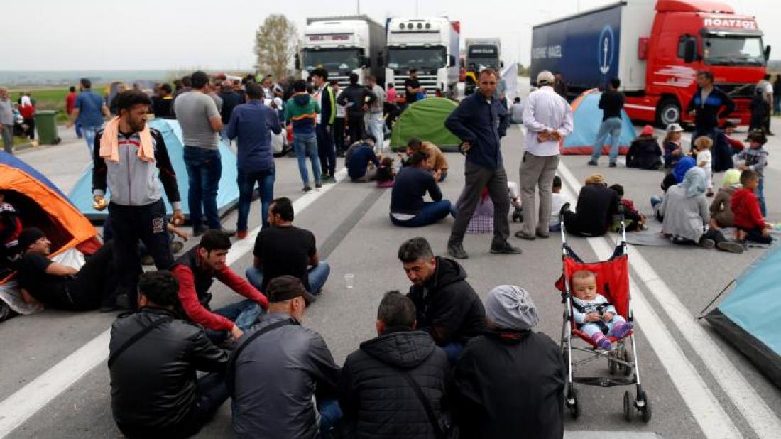 Οι πρόσφυγες έχουν στήσει σκηνές στο οδόστρωμα και μπλοκάρουν τη διέλευση των φορτηγών, τα οποία κινούνται από παρακαμπτήριους δρόμους. Αντίθετα, Ι.Χ. αυτοκίνητα και λεωφορεία διέρχονται κανονικά από το σημείο.