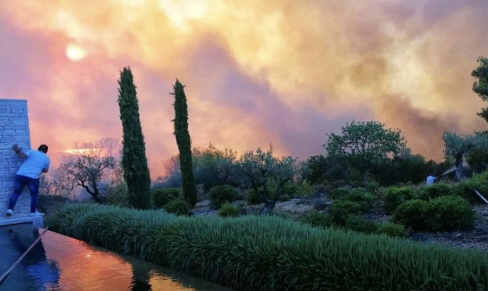 Σύμφωνα πάντα με τον δήμαρχο, «οι πυροσβεστικές δυνάμεις ενισχύονται συνεχώς», συμπληρώνοντας ότι «ευτυχώς έχει μειωθεί η ένταση των ανέμων».