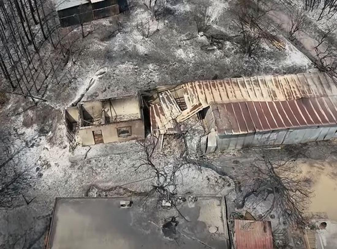 Οι εικόνες που κατέγραψε το drone αποκαλύπτουν και δίνουν μια πρώτη εικόνα του μεγέθους της καταστροφής στην περιοχή με καμένες δασικές εκτάσεις και δεκάδες σπίτια.