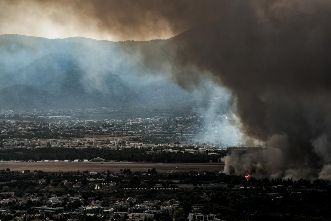 Ανεξέλεγκτη μαίνεται η φωτιά στην περιοχή της Βαρυμπόμπης, με τις φλόγες να καταστρέφουν τα πάντα στο πέρασμά τους.