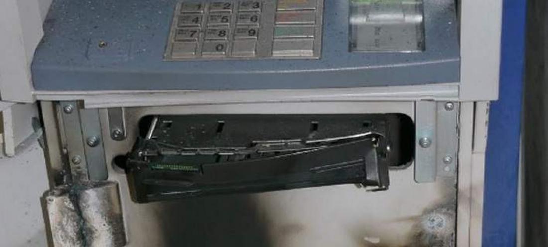 Απο την έκρηξη και την πυρκαγιά που ακολούθησε, καταστράφηκε ολοσχερώς το μηχάνημα αυτόματων συναλλαγών της τράπεζας.