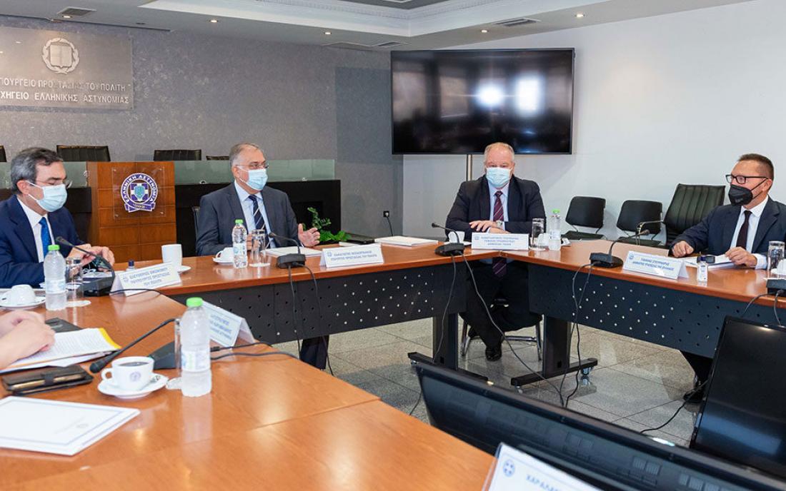 Στη σύσκεψη συμμετείχαν ο υπουργός Προστασίας του Πολίτης Τάκης Θεοδωρικάκος, ο υφυπουργός Λευτέρης Οικονόμου, ο διοικητής της Τράπεζας Γιάννης Στουρνάρας, ο γενικός γραμματέας Κωνσταντίνος Τσουβάλας, ο αρχηγός της Ελληνικής Αστυνομίας αντιστράτηγος Μιχαήλ Καραμαλάκης, ο πρόεδρος της Ένωσης Τραπεζών Βασίλειος Ράπανος, ο αντιπρόεδρος της Εκτελεστικής Επιτροπής της Ένωσης Τραπεζών Σπυρίδων Ανδρονικάκης, ο διευθυντής Επιθεώρησης Εποπτευόμενων Εταιρειών Γεώργιος Πάσχας, η γενική γραμματέας της Ελληνικής Ένωσης Τραπεζών Χαρούλα Απιλαγάκη, ο πρόεδρος της Συντονιστικής Επιτροπής Ιωάννης Γραμματικάκης, ο διευθυντής της Δίωξης Ηλεκτρονικού Εγκλήματος Βασίλειος Παπακώστας και ο διευθυντής της Οικονομικής Αστυνομίας Δημήτρης Λουκόπουλος.