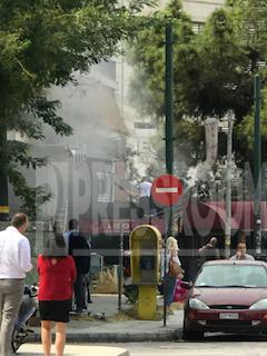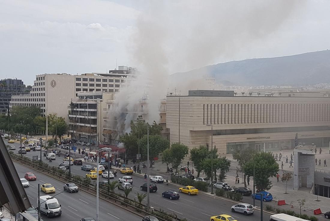 Οι φλόγες έφτασαν μέχρι τον πρώτο όροφο του κτιρίου όπου στεγάζονται γραφεία και διαμερίσματα.