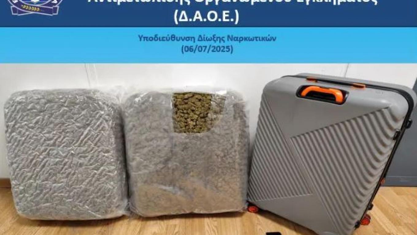 Αστυνομικοί της Υποδιεύθυνσης Δίωξης Ναρκωτικών της Διεύθυνσης Αντιμετώπισης Οργανωμένου Εγκλήματος συνέλαβαν τα ξημερώματα της Κυριακής στο Διεθνή Αερολιμένα Αθηνών «Ελ. Βενιζέλος», έναν αλλοδαπό, ο οποίος κατείχε μεγάλη ποσότητα ακατέργαστης κάνναβης (skunk).