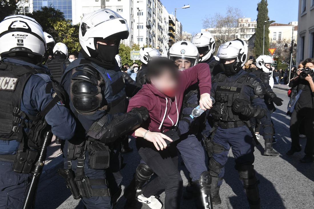 "Την 13.00 ώρα σήμερα (Τετάρτη 10 Φεβρουαρίου 2021), πραγματοποιήθηκε συνάθροιση 5.000 περίπου ατόμων, στο χώρο των Προπυλαίων του Πανεπιστημίου Αθηνών και ακολούθησε πορεία μέσω των οδών Πανεπιστημίου και Σταδίου, μέχρι τον χώρο μπροστά από το Μνημείο του Αγνώστου Στρατιώτη.