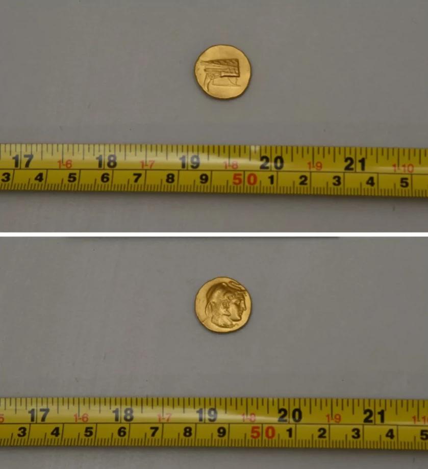 - Το σπάνιο χρυσό νόμισμα, Στατήρας του Πτολεμαίου Α’ της Αιγύπτου του 4ου αιώνα π.Χ. με διάμετρο 18 χιλιοστά και βάρος 8,5 γραμμάρια,