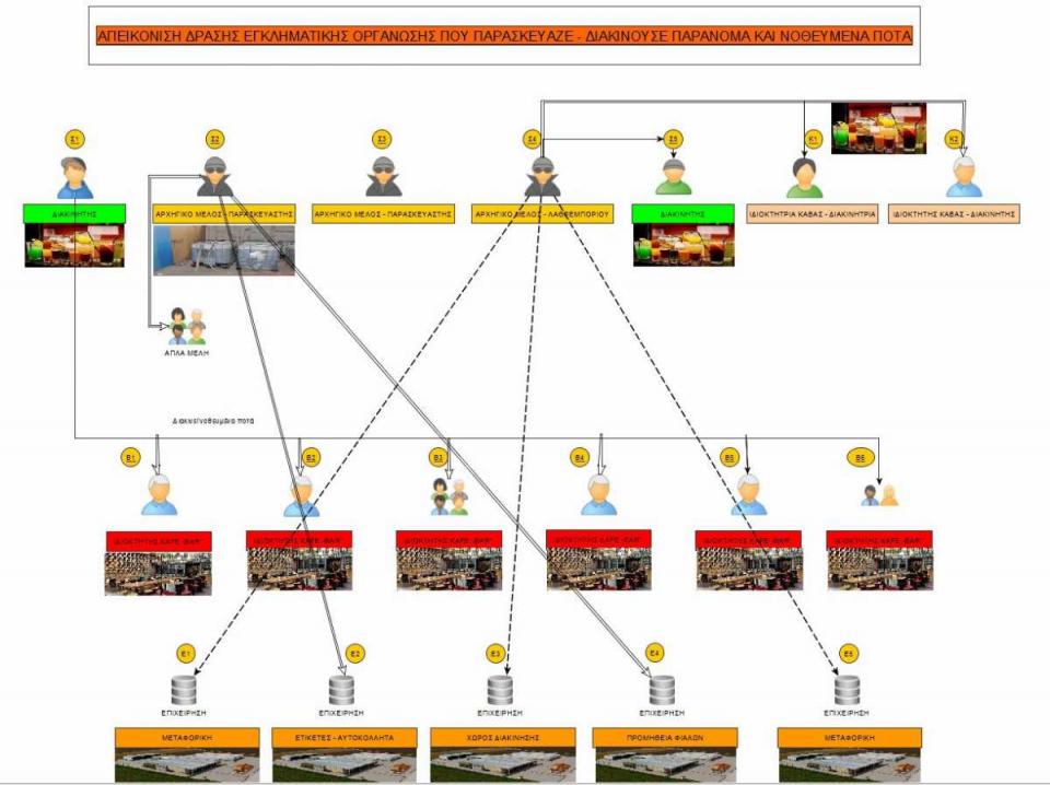 Συγκεκριμένα, εξαρθρώθηκαν από την Οικονομική Αστυνομία δύο εγκληματικές οργανώσεις, οι οποίες δραστηριοποιούνταν, τουλάχιστον από τον Νοέμβριο του 2015, η πρώτη στην παρασκευή και διακίνηση νοθευμένων αλκοολούχων ποτών και η δεύτερη στην αγορά και διακίνηση λαθραίων αλκοολούχων ποτών.