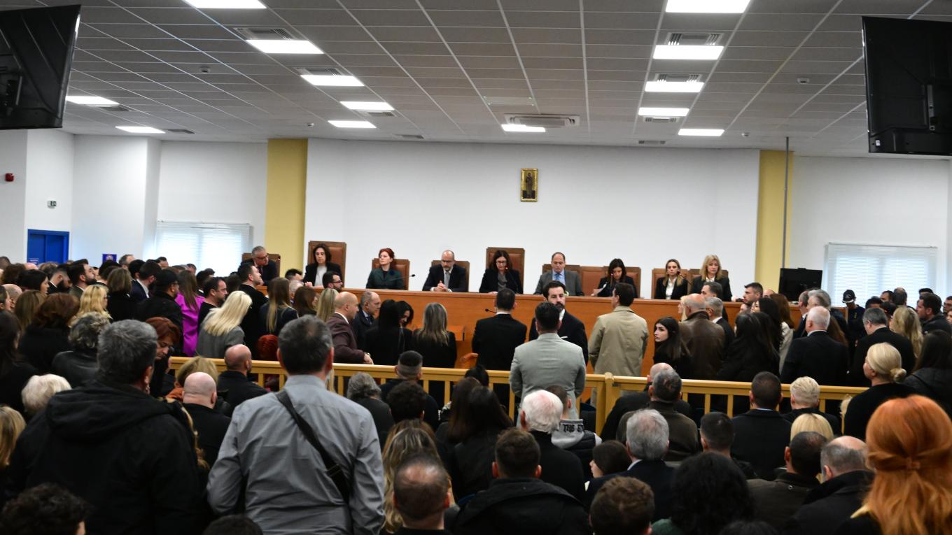 Την ίδια ώρα, στο εσωτερικό της αίθουσας επικράτησε έντονη αναστάτωση, καθώς η διαδικασία εξελίχθηκε σε κλίμα έντασης, με συνωστισμό, συνεχείς διακοπές και έντονες αντιδράσεις από συγγενείς και δικηγόρους. Η πρώτη ημέρα ολοκληρώθηκε με απόφαση διακοπής της δίκης για την 1η Απριλίου, προκειμένου να αντιμετωπιστούν τα σοβαρά ζητήματα χωρητικότητας.
