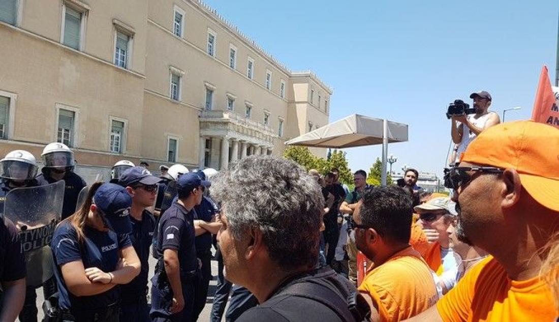 Μεγάλη ένταση σημειώθηκε στην πορεία της ΠΟΕ-ΟΤΑ. Νωρίτερα, οι συγκεντρωμένοι προσπαάθησαν να σπάσουν τον κλοιό της Αστυνομίας και να εισέλθουν στη Βουλή και σπρώχτηκαν με τα ΜΑΤ που μπλοκάρισαν την είσοδο.