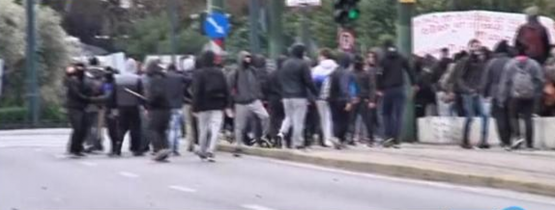 Ομάδα περίπου 20 ατόμων όταν είδαν κλούβα των ΜΑΤ επι της λεωφόρου Αμαλίας άρχισε να πετάει αντικείμενα.