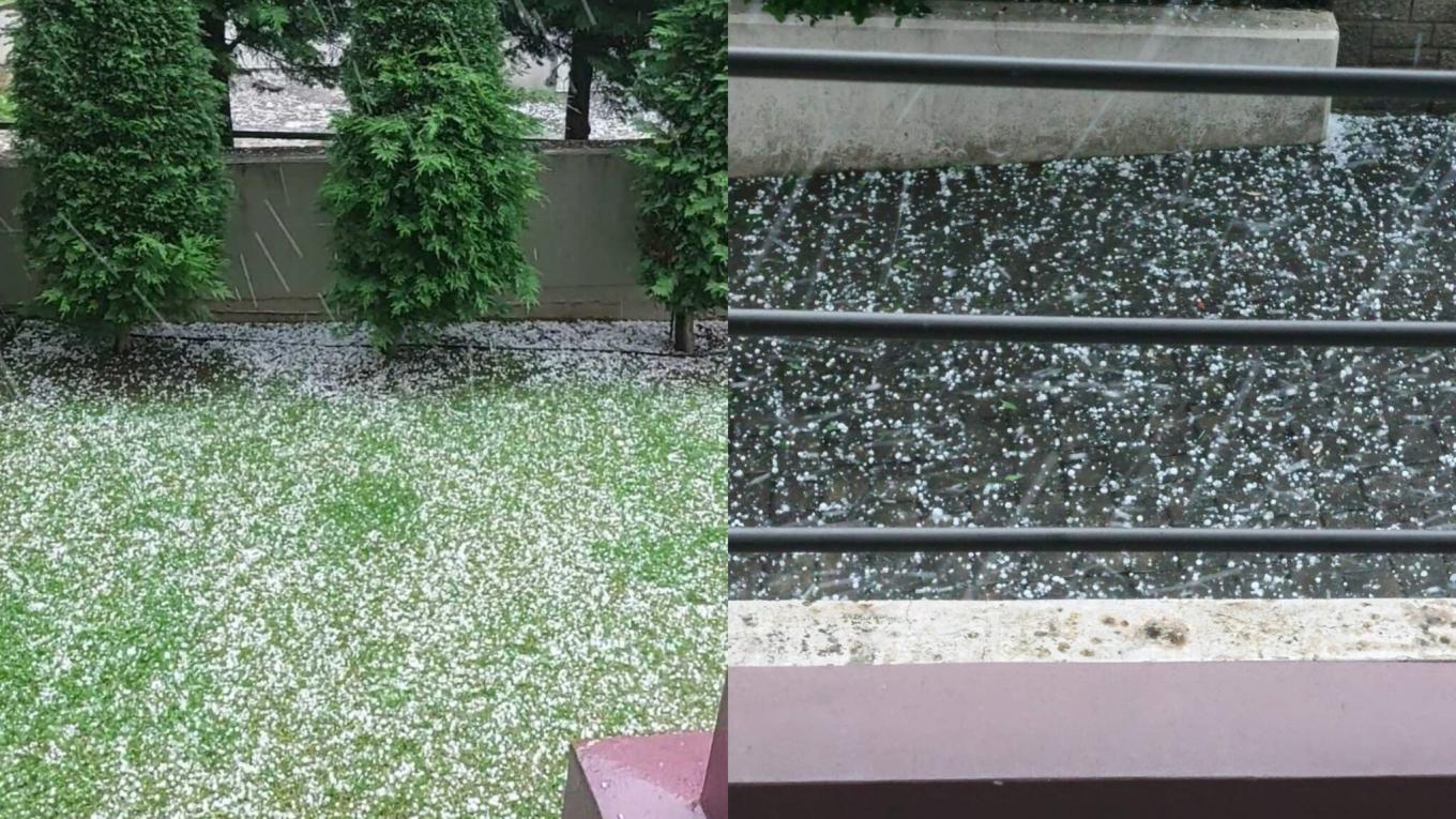 Το χαλάζι έχει μέγεθος φουντουκιού, με αποτέλεσμα οι δρόμοι και τα πεζοδρόμια να δείχνουν χιονισμένα.