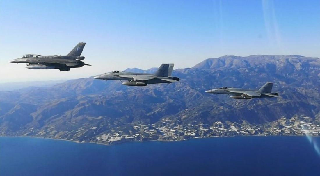 Επιπρόσθετα, αριθμός αεροσκαφών της ΠΑ εκτέλεσε εκπαίδευση εναέριας μάχης με τα αεροσκάφη του Αεροπλανοφόρου σε ρόλο τόσο επιτιθέμενου όσο και αμυνόμενου, ενώ κατά τη διάρκεια της ημέρας εκτελέσθηκαν πυρά Δυτικά Κρήτης και στο Πεδίο Βολής ΚΑΡΑΒΙΑ».