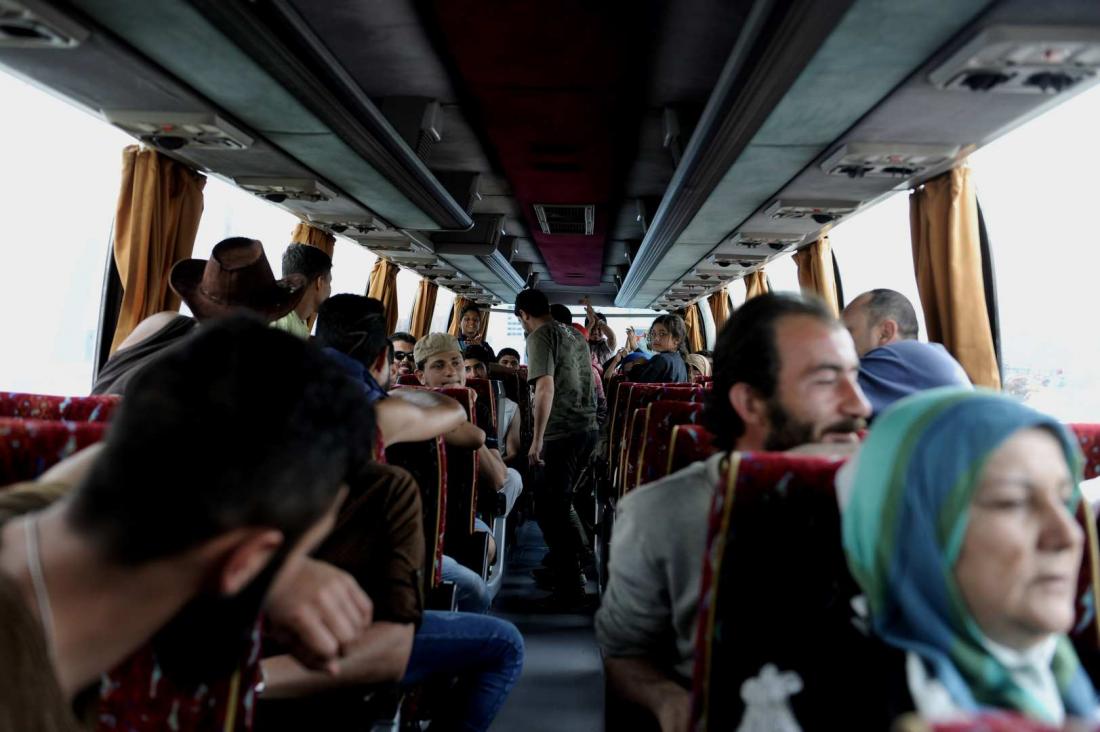 Περίπου 180 άτομα, στην πλειονότητά τους οικογένειες Σύρων, επιβιβάστηκαν μέχρι το μεσημέρι σε δύο λεωφορεία του ΟΑΣΑ με προορισμό το κέντρο φιλοξενίας στον Σκαραμαγκά.