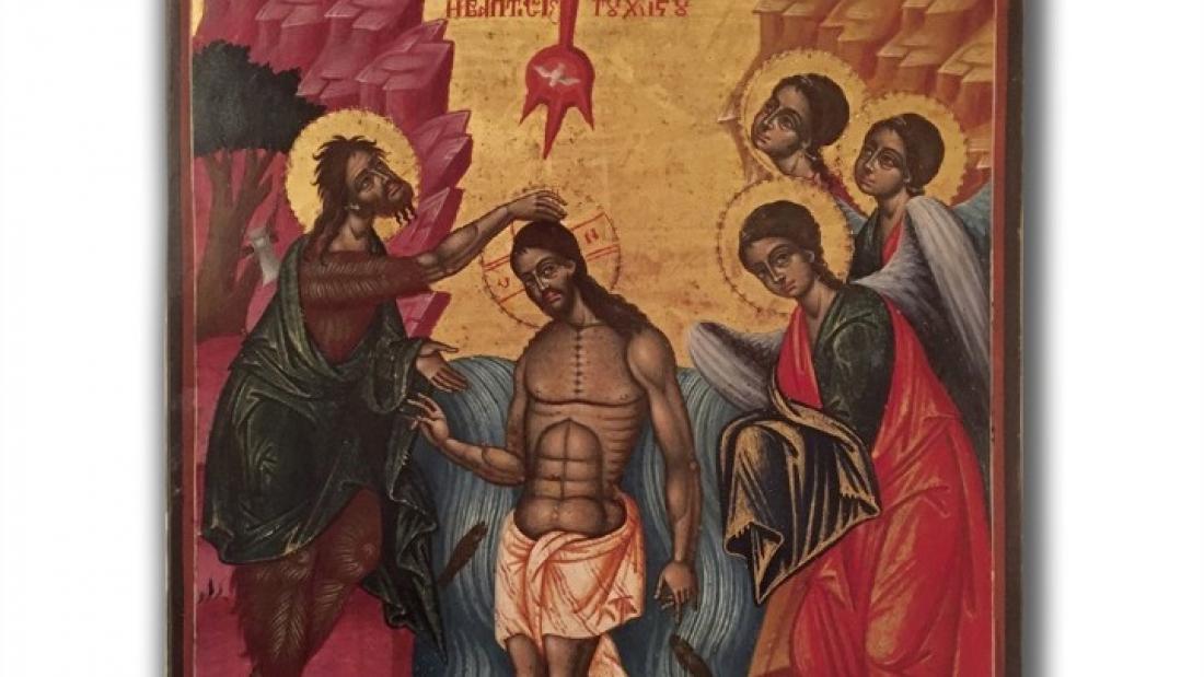 Εικόνα του 19ου αιώνα με παράσταση τη Βάπτιση του Χριστού, που είχε κλαπεί από το δωδεκάορτο του τέμπλου της Ιεράς Μονής της Κοίμησης της Θεοτόκου Βισοκού στον Καλουτά, του Κεντρικού Ζαγορίου Ιωαννίνων, επεστράφη στις 31 Ιουλίου 2020.