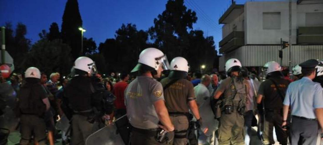 Οι συγκεντρωθέντες θέλησαν να πραγματοποιήσουν πορεία προς τον προσωρινό καταυλισμό φιλοξενίας μεταναστών και προσφύγων στην Σούδα, κίνηση όμως για την οποία δεν είχε ενημερωθεί από πριν η Αστυνομία, με αποτέλεσμα, διμοιρία των ΜΑΤ που βρίσκεται στο νησί να επιχειρήσει να τους εμποδίσει να προχωρήσουν. Εκεί η προκλήθηκε η πρώτη ένταση από την οποία δεν γλίτωσαν σύμφωνα με τοπικά μέσα ούτε οι δημοσιογράφοι.