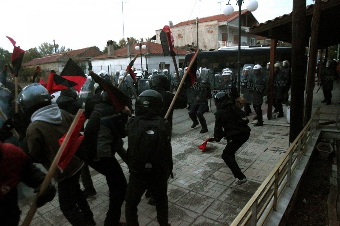 Πρόσφυγες και αντιεξουσιαστές αυτοαποκαλούμενοι "αλληλέγγυοι", πέταξαν πέτρες, καδρόνια και κάθε λογής αντικείμενα προς τις αστυνομικές δυνάμεις. Από το σημείο έγιναν 27 προσαγωγές, εκ των οποίων οι 21 ήταν πρόσφυγες και οι υπόλοιποι "αλληλέγγυοι", μέλη μίας ΜΚΟ που δραστηριοποιείται στον συγκεκριμένο καταυλισμό. Από αυτούς, δύο ήταν Ισπανοί, ένας Γερμανός και τρεις Έλληνες, προερχόμενοι από τον αντιεξουσιαστικό χώρο.