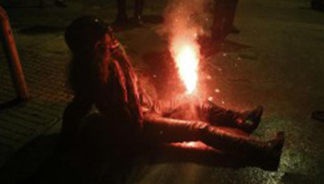 Σύμφωνα με την ανακοίνωση του νοσοκομείου «Ευαγγελισμός», «χθες το βράδυ, στις 21:18, διακομίσθηκε στο Τμήμα Επειγόντων Περιστατικών του νοσοκομείου "Ευαγγελισμός" μία γυναίκα 55 ετών, τραυματισμένη από φωτοβολίδα στο αριστερό πόδι και με σοβαρό αναπνευστικό πρόβλημα λόγω εισπνοής χημικών».