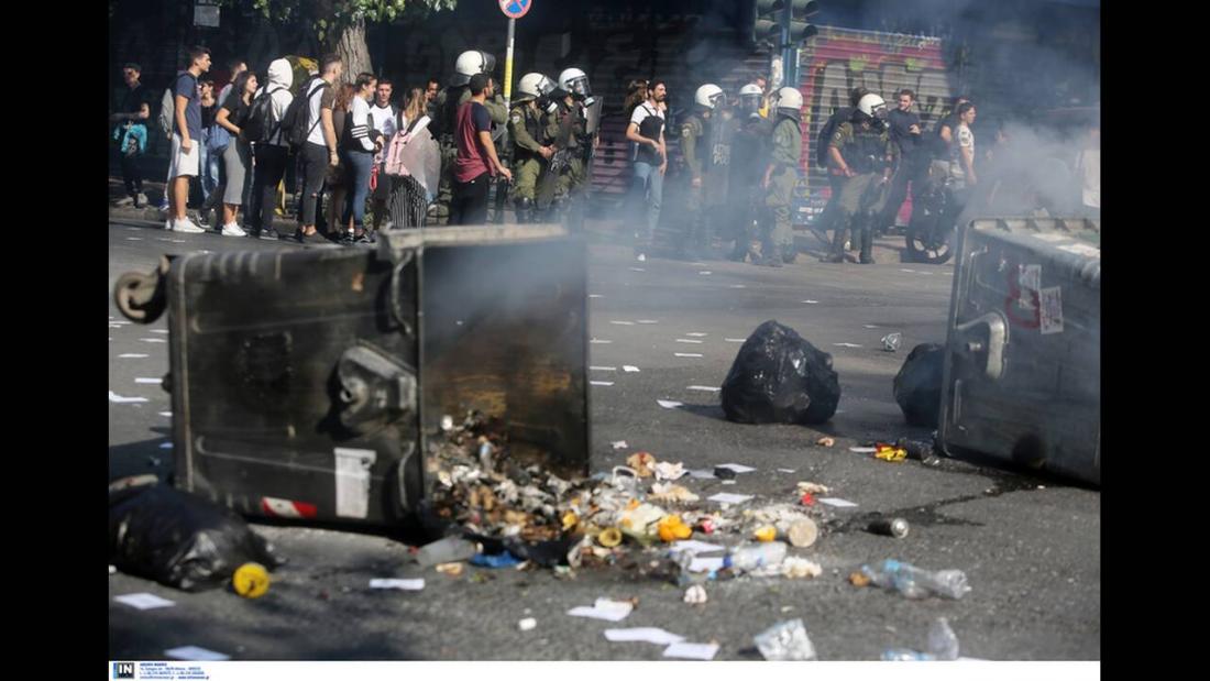 Επεισόδια στην ΑΣΟΕΕ - Αγνωστοι έβαλαν φωτιές σε κάδους απορριμμάτων (ΒΙΝΤΕΟ-ΦΩΤΟ)