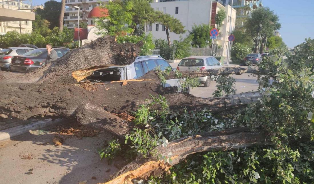 Φθορές προκλήθηκαν σε αυτοκίνητο που ήταν σταθμευμένο στη Λεωφόρο Μεγάλου Αλεξάνδρου, στο ύψος του ξενοδοχείου “ Μακεδονία Παλλάς” από πτώση λεύκας, λίγο πριν τις 7 το απόγευμα.