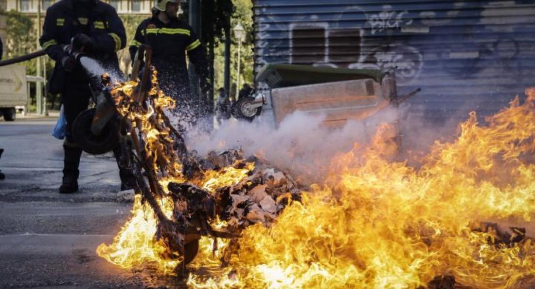 Οι κουκουλοφόροι πέταξαν φωτοβολίδες και άναψαν φωτιές στον πεζόδρομο της Σίνα, ενώ οι αστυνομικές δυνάμεις έκαναν χρήση χημικών προκειμένου να αποτρέψουν την κίνηση των νεαρών προς την Ακαδημίας, την ώρα που η κυκλοφορία των οχημάτων διεξαγόταν κανονικά.