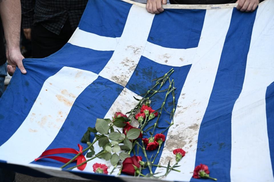 Ακολούθησε η πορεία μέσω της οδού Ακαδημίας και του Συντάγματος προς την αμερικανική πρεσβεία.