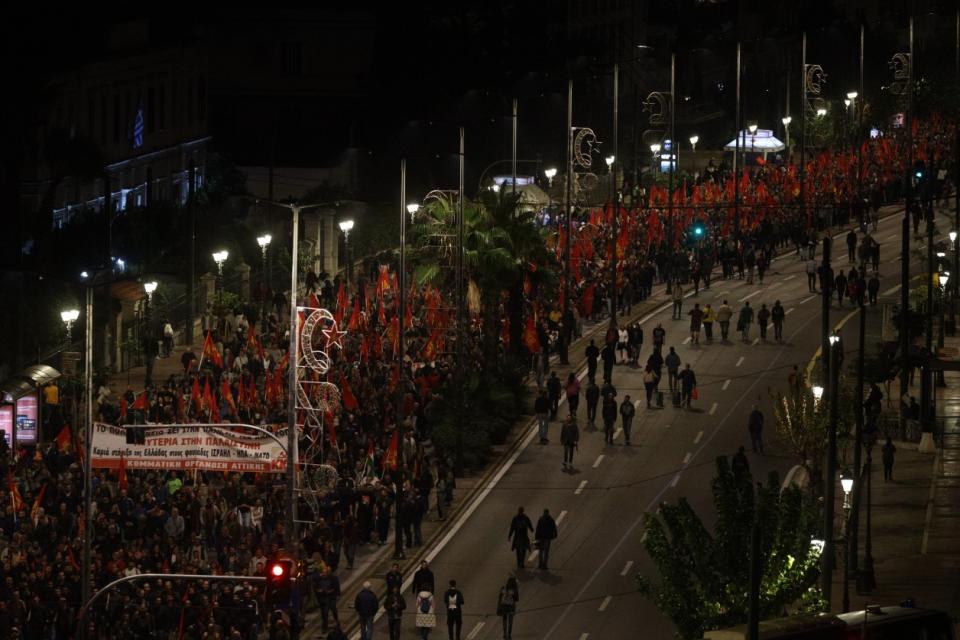 Φοιτητικοί σύλλογοι με σύνθημα «οι εξεγέρσεις δεν μπαίνουν στα μουσεία, εμπρός για της γενιάς μας τα Πολυτεχνεία», φορείς, ο ΣΥΡΙΖΑ-ΠΣ, το ΠΑΣΟΚ-ΚΙΝΑΛ, το ΜέΡΑ25, κόμματα κι οργανώσεις της εξωκοινοβουλευτικής Αριστεράς, εργατικά σωματεία και συλλογικότητες του αντιεξουσιαστικού χώρου συγκεντρώθηκαν αρχικά στην πλατεία Κλαυθμώνος και στο άγαλμα του Κολοκοτρώνη και κατευθύνονται προς την αμερικανική πρεσβεία.