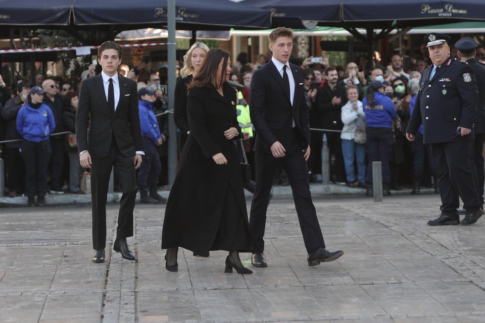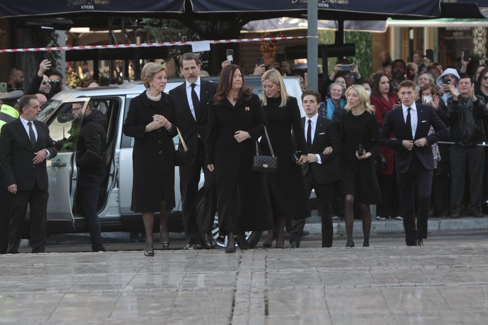 Μετά την ολοκλήρωση του μνημοσύνου, η οικογένεια του τέως βασιλιά στάθηκε στα σκαλιά της Μητρόπολης και χαιρέτησε τον κόσμο.