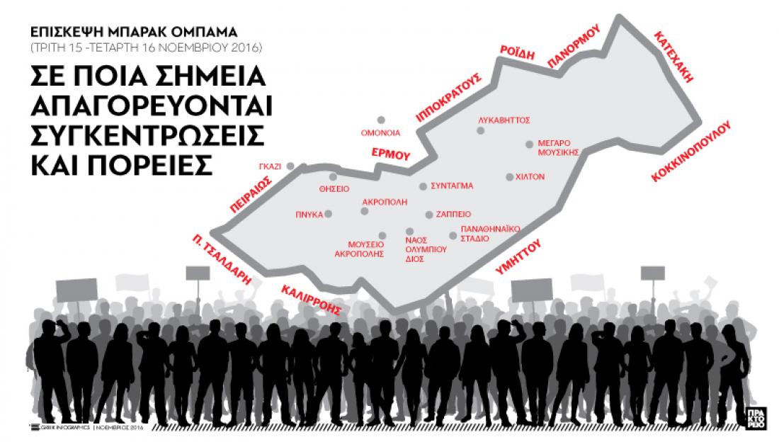 Επίσκεψη Ομπάμα στην Αθήνα: Σε ποια σημεία απαγορεύονται συγκεντρώσεις και πορείες (ΓΡΑΦΗΜΑ)