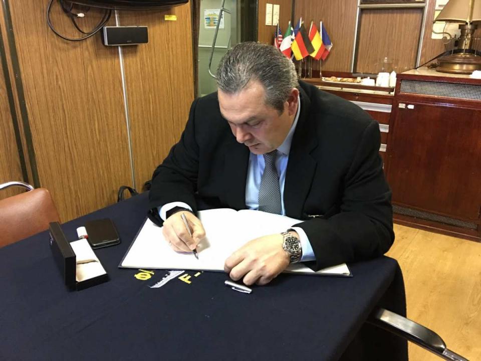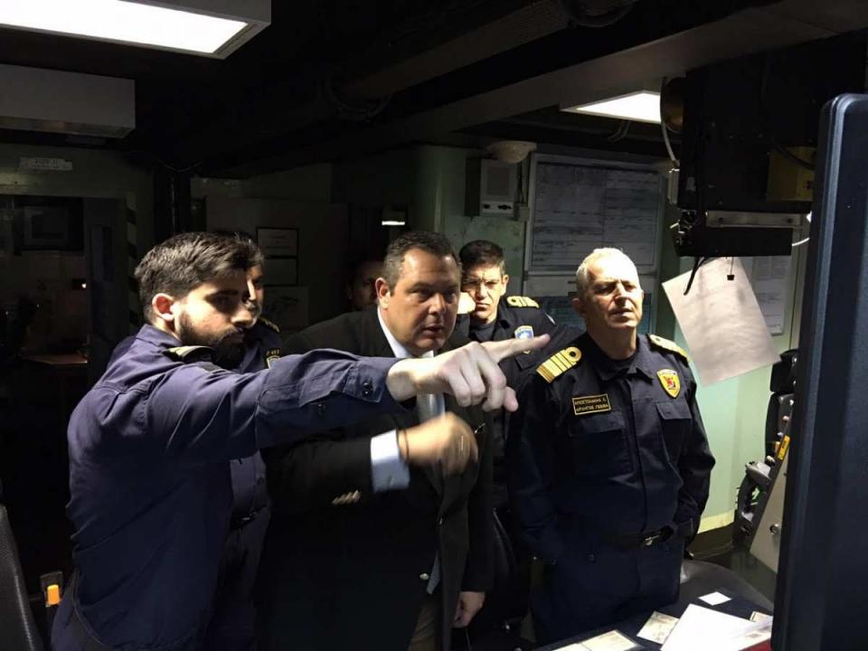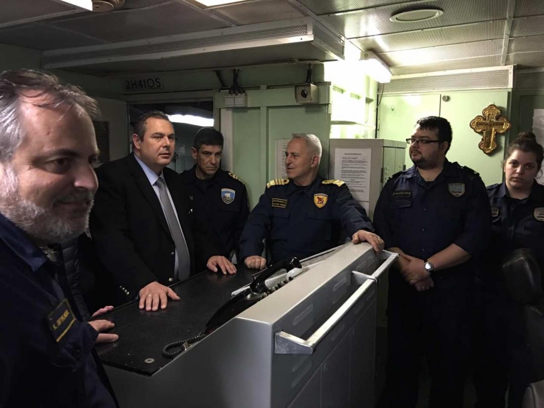Ο Υπουργός Εθνικής Άμυνας Πάνος Καμμένος, συνοδευόμενος από τον Αρχηγό ΓΕΕΘΑ Ναύαρχο Ευάγγελο Αποστολάκη ΠΝ και τον Αρχηγό Στόλου Αντιναύαρχο Ιωάννη Παυλόπουλο ΠΝ, πραγματοποίησε ξαφνική επίσκεψη στη Φρεγάτα «ΛΗΜΝΟΣ», η οποία εκτελεί καθήκοντα πλοίου επιχείρησης φυλακής σκοπούντος και στο πλαίσιο προετοιμασίας της προγραμματισμένης Άσκησης «ΑΣΤΡΑΠΗ 3/17».