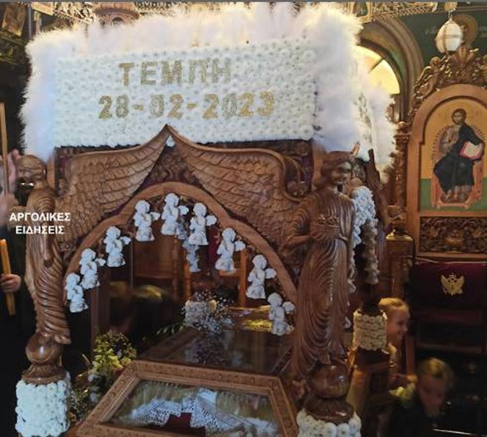 Σύμφωνα με την τοπική ιστοσελίδα argolikeseidhseis.grοι εθελόντριες στόλισαν τον επιτάφιο με την επιγραφή ΤΕΜΠΗ 28/2/2023, με περισσή αγάπη, στη μνήμη των θυμάτων της τραγωδίας.