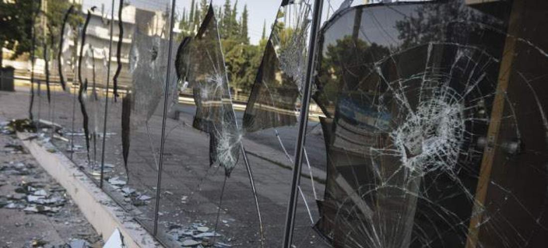 Γύρω από το κτίριο, στη λεωφόρο Κηφισίας, υπάρχουν παντού σπασμένα γυαλιά, καθώς η τζαμαρία έχει καταστραφεί σε πολλά σημεία, ενώ σε άλλα έχουν πετάξει μπογιές.