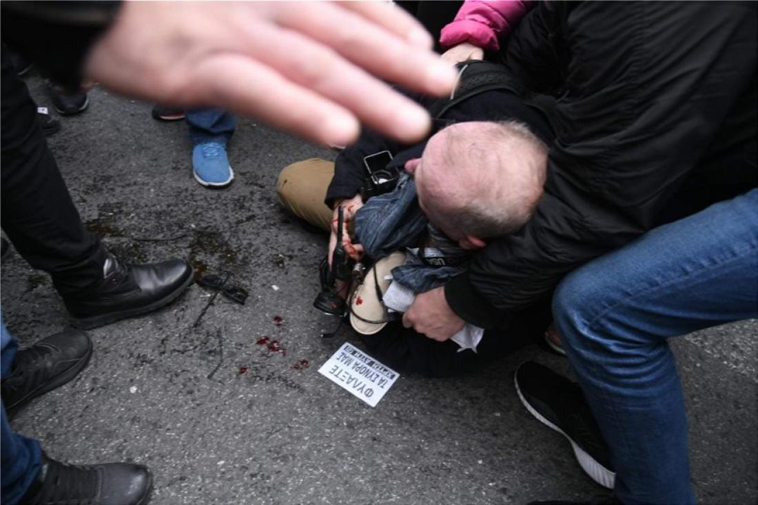 Σύμφωνα με όσα ανέφεραν αστυνομικές πηγές στο ΑΠΕ-ΜΠΕ, ο φωτορεπόρτερ δέχθηκε ξαφνικά επίθεση από άγνωστα άτομα, μόλις τον είδαν να τραβάει φωτογραφίες από τη συγκέντρωση, ενώ όταν έσπευσαν αστυνομικοί στο σημείο για να τον βοηθήσουν εκείνος τούς είπε ότι επιφυλάσσεται για κάθε νόμιμο δικαίωμά του και πως πρόκειται να καταθέσει μήνυση. Η αστυνομία δεν έχει προχωρήσει σε κάποια προσαγωγή έως αυτήν την ώρα.